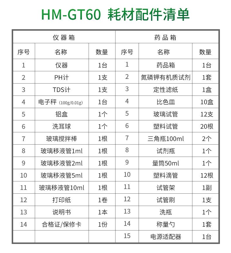 | 儀器 | 臺 | 1 | 藥品箱 | 臺 | 1 |