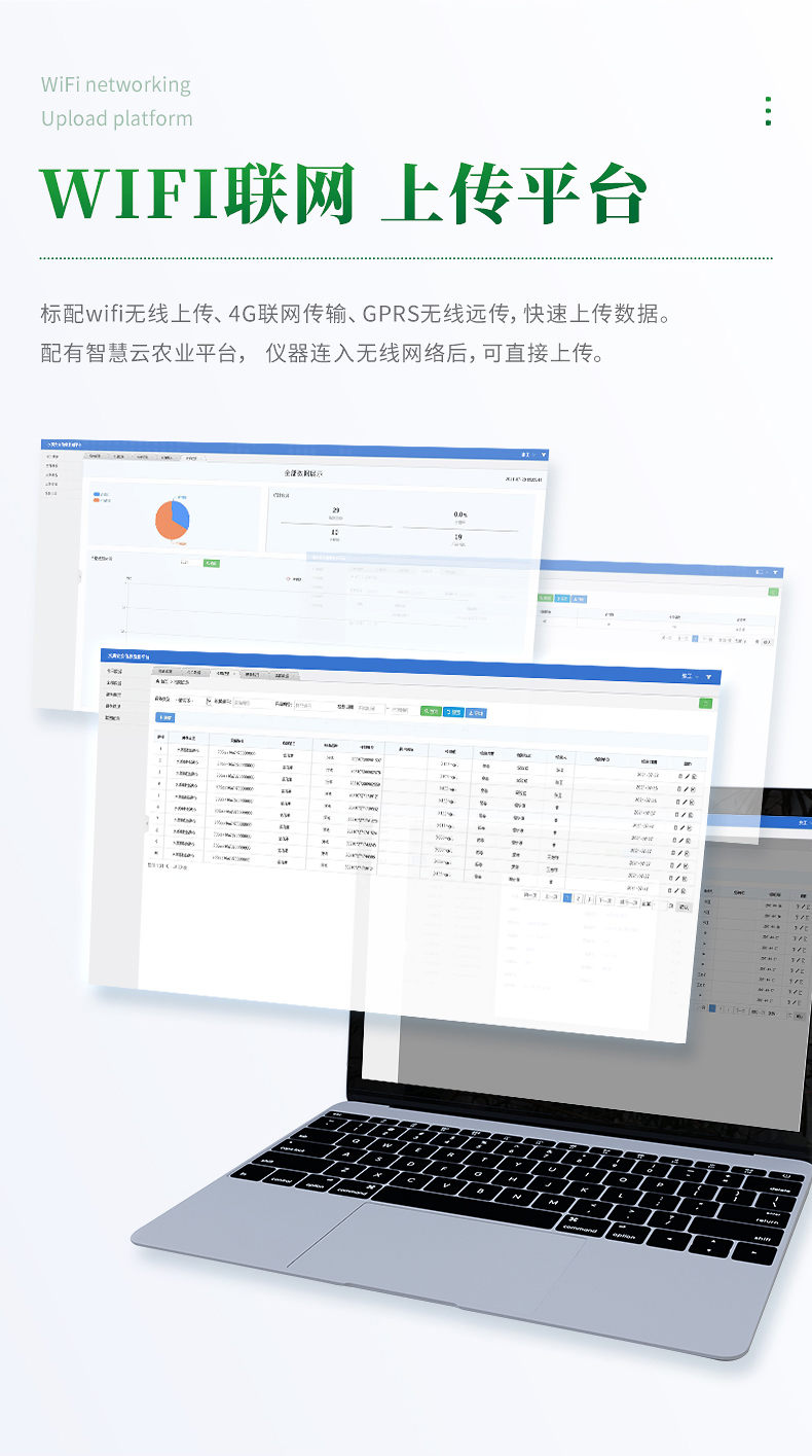 ★12、儀器標配wifi無線上傳、4G聯(lián)網(wǎng)傳輸、GPRS無線遠傳,快速上傳數(shù)據(jù)。