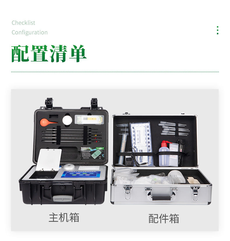 配套齊全:該儀器集藥、器、儀為一體,攜帶方便,相當于一個小型移動實驗室,無需用戶自配附件,亦可靈活野外流動測試。適于農(nóng)業(yè)服務(wù)部門或農(nóng)資經(jīng)銷商、高教院校、科研院所、合作社、肥料廠商、大種植戶測土施肥和鑒別肥料真假及環(huán)保檢測應(yīng)用。