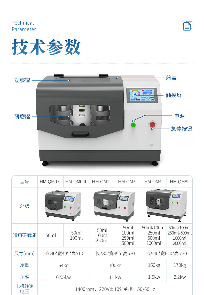 1. 適用研磨罐:本機是新款通用型,50ml規格研磨罐,可根據客戶需求使用不同材質的研磨罐;對角對稱即可(4個研磨罐為一套)。